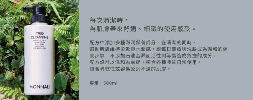 TR50 濃顏露,讓卸妝、清潔與保養感受,一次完成。