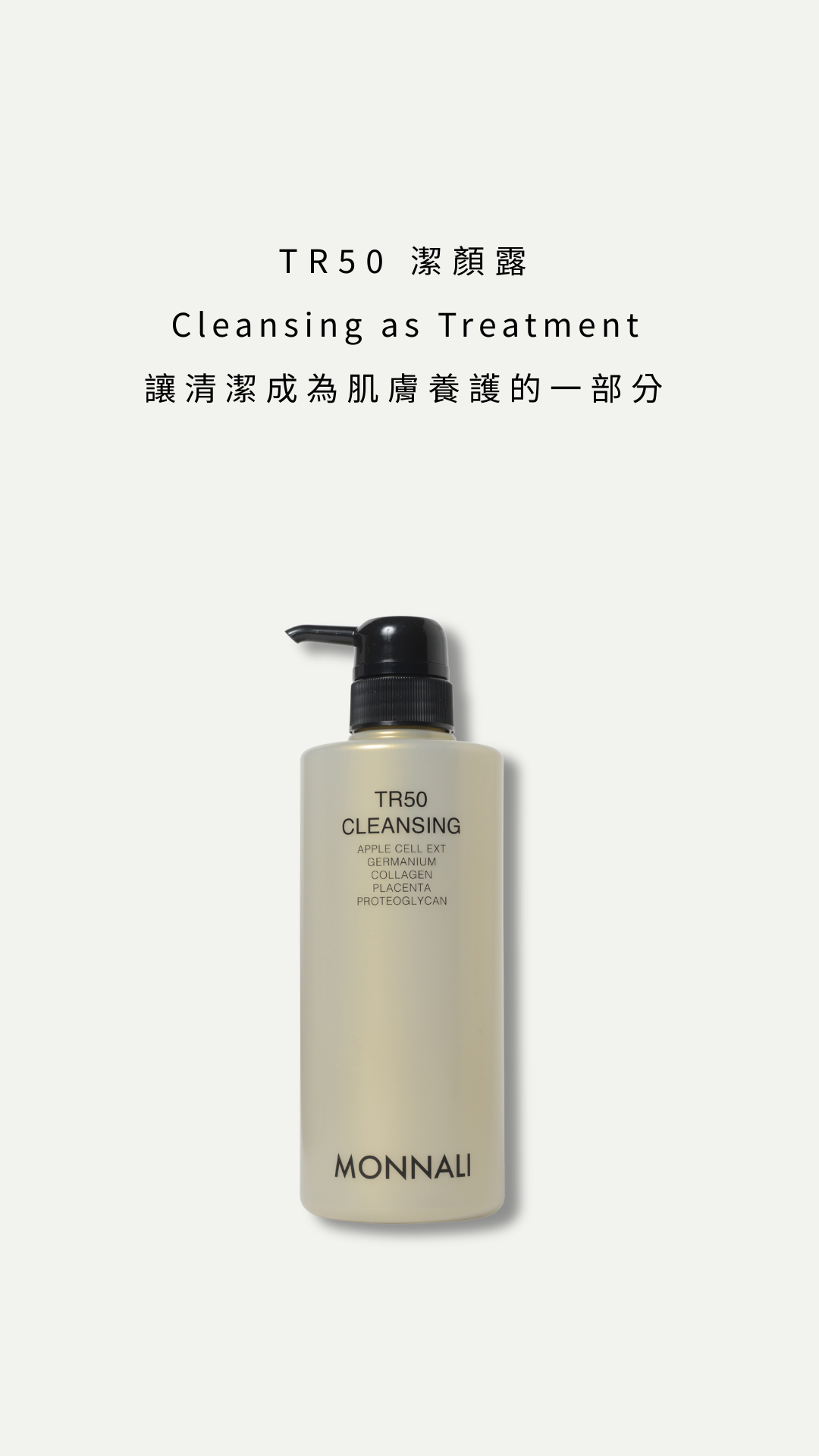 TR50 潔顏露是一款以保養為核心設計的潔顏產品。